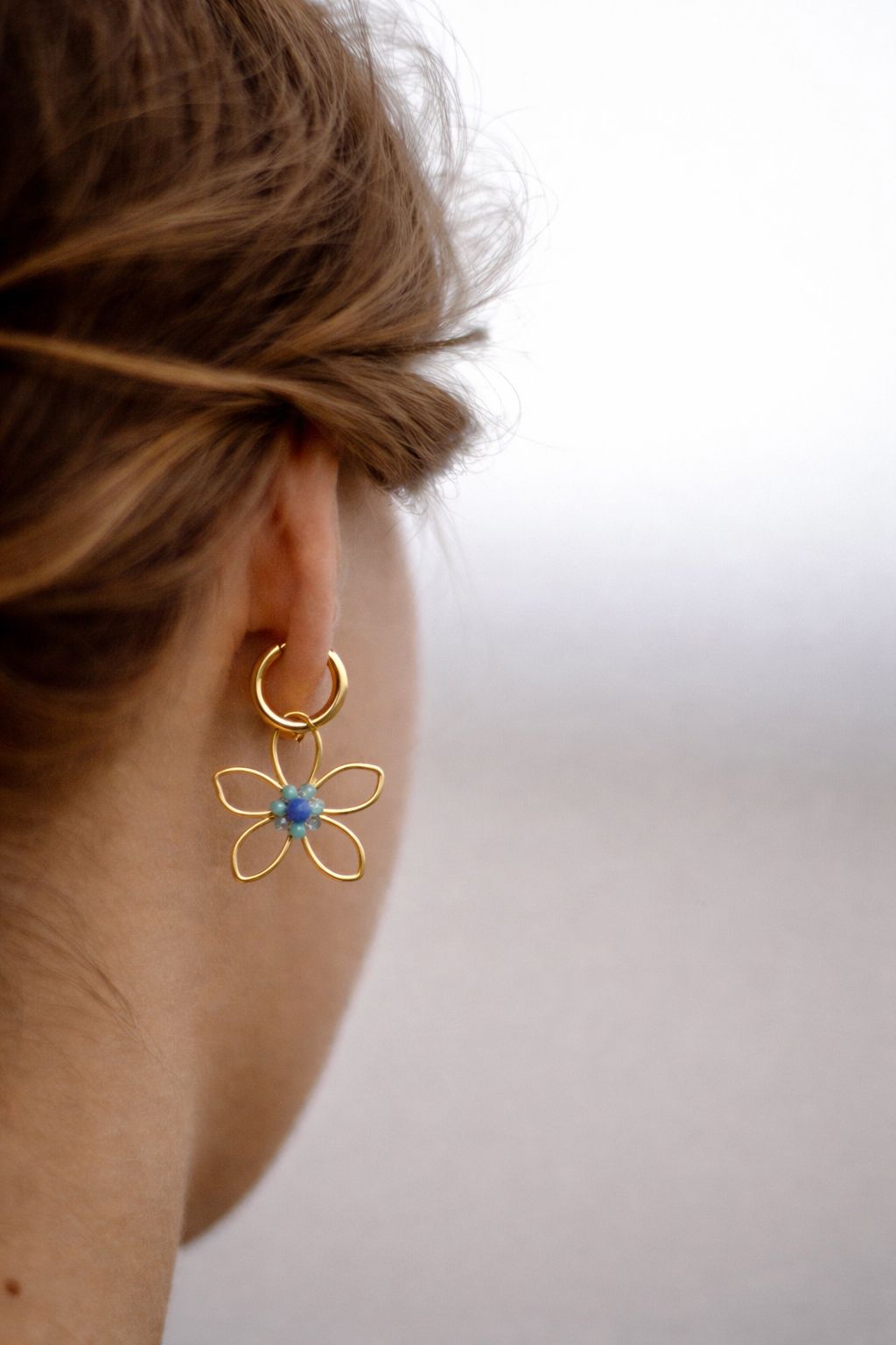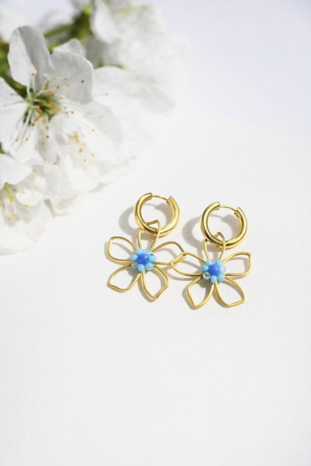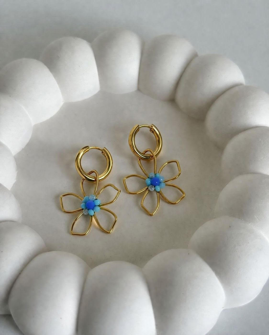 Ove elegantne naušnice u obliku cvjetova s nježnim plavim detaljima stvorene su za žene koje vole istaknuti svoj stil s dozom profinjene ženstvenosti. Savršen spoj romantičnog dizajna i modernog akcenta čini ih idealnim dodatkom za svaku priliku – od svakodnevnih kombinacija do posebnih izlazaka.